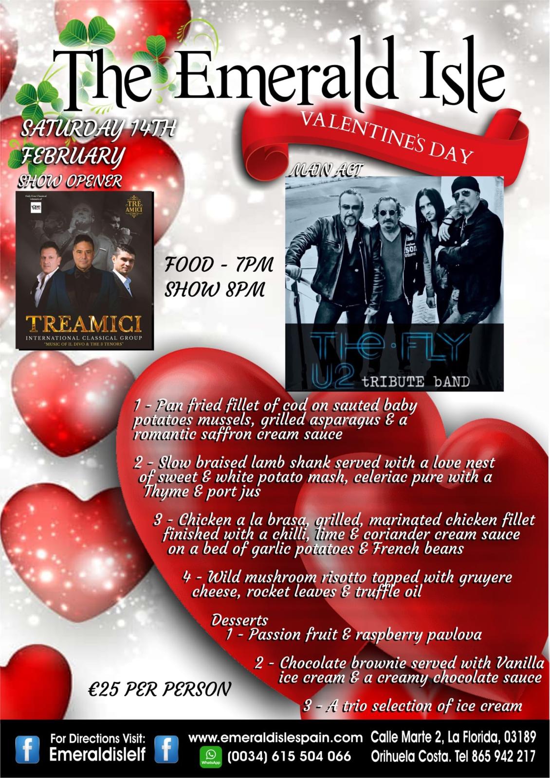 | Sat 14 Feb | Valentine’s Night – Tre Amici & The Fly | From 7:00 pm | €25 per person |